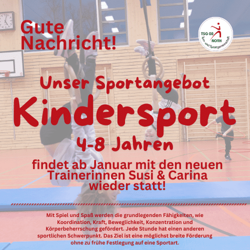 Gute Nachricht für unser Sportangebot KINDERSPORT (von 4 bis 8 Jahren) 🥳