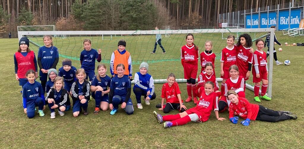 Bei herrlichem Fußballwetter spielten am Sonntagvormittag unsere F1-Jungs (Jg 2017) gegen die Mädchen (Jg 2016/17). Zuerst auf 3-gegen-3-Feldern, bevor mit höhenreduzierten Toren im 5-gegen-5 gespielt wurde.