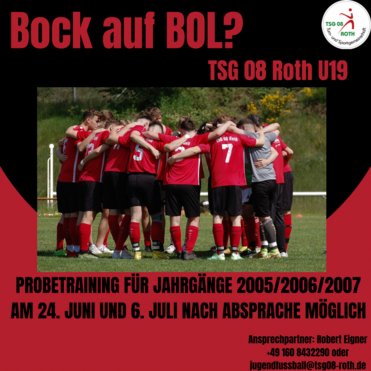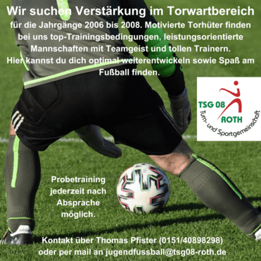 Kontakt über Thomas Pfister (0151/40898298) oder per mail an jugendfussball@tsg08-roth.de