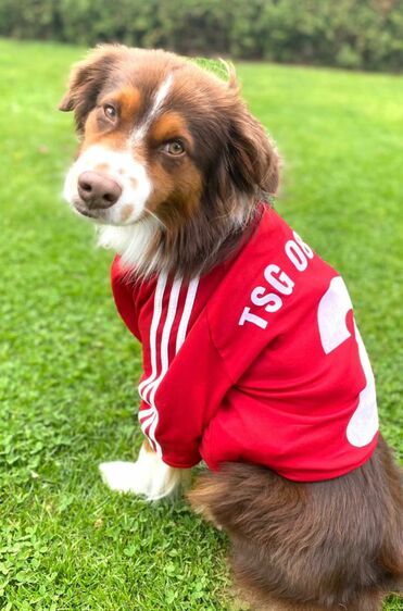 Die TSG hat bereits ein Maskottchen namens Toni, aus der Fußballabteilung kommt jetzt tierischer Nachwuchs dazu. Ein treuer Begleiter vor allem unserer Nachwuchsmannschaften – wo ja auch die jungen Herrchen und Frauchen spielen – ist Topper Cummins.