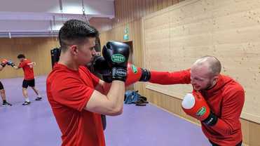 Der seit Herbst im Speck Sportpark tätige Mathias Berner und sein „Co“ Max Weiß – der sich nach seiner Knie-Operation vorerst ausschließlich auf sein Trainerdasein konzentrieren muss – hatten in den vergangenen Wochen zum freiwilligen Hallenkick geladen und haben sich für die Vorbereitung einiges einfallen lassen. Unter dem Motto „lerne deinen Verein kennen“ werden die Spieler beispielsweise in den kommenden Wochen auch die Möglichkeit bekommen, andere Sportarten in unserem Verein auszuprobieren – das Angebot ist ja groß genug. Einen Vorgeschmack gab es bereits am Donnerstag beim Box-Training im lila Saal mit Manni Rohde (Bild).