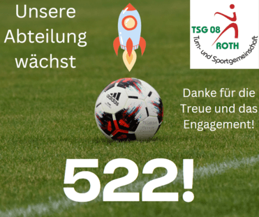 Die Abteilungsleitung hat sich zuletzt die Zahlen in Sachen Mitgliederentwicklung angeschaut. 2020 zählten wir 426 Mitglieder, 2021 blieb es relativ stabil (416) und jetzt, 2022, dürfen wir uns darüber freuen, dass wir einen stolzen Zuwachs vermelden dürfen. Wir haben die 500 geknackt, die Fußballabteilung der TSG 08 Roth hat aktuell 522 Mitglieder!