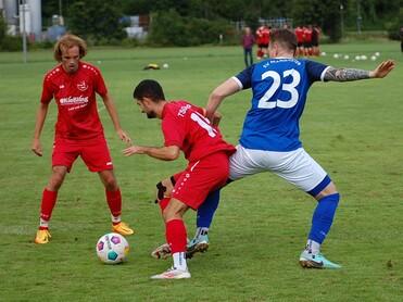TSG-Tore: Filippo Virduzzo, Jimi Müller und Artem Suraichenko. Marienstein war früh gehandicapt durch eine Rote Karte wegen einer Notbremse (1.) an Tim Wolfschläger...