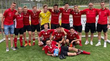 Unsere Vollmannschaft hat am vergangenen Samstag den im Rahmen des 50-jährigen Landkreisjubiläums und der Fußballwoche bei der TSG erstmals ausgetragenen Landkreiscup gewonnen. Die Mannschaft der Trainer Marian Hrasche und Max Weiß musste sich nur dem späteren Tabellenzweiten TSV Spalt geschlagen gegeben, gewann ihre restlichen sieben Spiele aber.