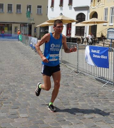 Wemding - 19.06.2022 - Den bisher heißesten Tag des Jahres suchte sich Roland Rigotti zu einem Doppelstart aus, nämlich den Wemdinger Stadtlauf. Auf der Kurzstrecke über 2400 Meter sicherte sich der Läufer vom Team Leidl der TSG 08 Roth im dünnen Starterfeld den ungefährdeten Gesamtsieg in 10:24 Minuten. Bei der schattenlosen, hügeligen Runde über sechs Kilometer war die Ausfallquote der angetretenen Läufer sehr hoch, und Roland Rigotti musste sich sprichwörtlich ins Ziel retten, dennoch sprang der 10 Gesamtrang unter 144 Zieleinläufern und der Altersklassensieg M45 nach 26:16 Minuten heraus.