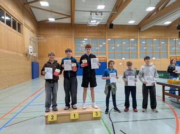 Im Oktober hatte Anibal von der TT-Abteilung an den Bezirkseinzelmeisterschaften der Jugend 15 teilgenommen. Dort erreichte er in einem Feld von 11 Jungen den 4. Platz. Nun durfte er auch bei den EM des Verbandsbereiches NW antreten. Diesmal bestand bei der Jugend 15 das Feld aus 16 Teilnehmern. Gestartet wurde mit vier Vorrundengruppen, dann ging es weiter im KO-System. Anibal unterlag in seiner Gruppe nur gegen Henri Hochleitner von Greuther Fürth und wurde Zweiter. Im Achtelfinale gewann er problemlos 3:0, im Viertelfinale traf er auf Robin Brücher vom TV Hilpoltstein, gegen den er bisher immer verloren hatte. Trotz eines 0:2 Rückstands konnte er ihn diesmal besiegen. Im Halbfinale wartete dann Nick Skutta vom FC Heilsbronn, gegen den er schon zweimal bei Turnieren gewonnen hatte. Leider klappte es diesmal nicht, er verlor 1:3. So traf er im Spiel um Platz drei noch einmal auf Henri Hochleitner, aber auch im zweiten Anlauf musste sich Anibal geschlagen geben. Mit seinem vierten Platz hat er leider keine sichere Qualifikation die Bayerischen EM, ob er als Nachrücker antreten kann wird sich in den nächsten Wochen zeigen.
