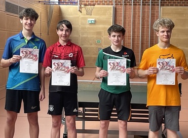 Fünf Jugendliche der TT-Abteilung waren in Büchenbach beim Qualifikationsturnier für das 2. Bezirksranglistenturnier (BRLT) am Start. Lian Höra, der bei der Jugend 19 antrat, schaffte die beste Platzierung und darf beim BRLT antreten. In der Vorrunde wurde er mit nur einem abgegebenen Satz souverän Erster. In der Endrunde gewann er auch alle Spiele und holte damit den Gesamtsieg. Jonas Ungar-Hermann und Tobi Ulbrich traten ebenfalls bei der Jugend 19 an. Sie belegten am Ende die Plätze fünf und zwölf. Heorchii Cherevko schaffte ebenfalls die Qualifikation für das BRLT. Er wurde bei der Jugend 15 Vierter. Sein Bruder Daniil machte es sogar noch besser. Er erkämpfte in der Jugend 13 den zweiten Platz und ist damit auch qualifiziert.