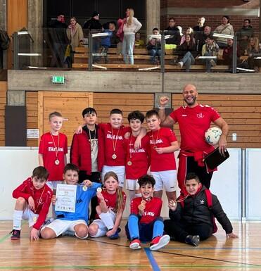 Insgesamt sechs Mannschaften spielten im Modus jeder gegen jeden um den Stadtmeistertitel, den sich etwas überraschend, aber völlig verdient, die SpVgg Roth sicherte. Die SG Pfaffenhofen/Büchenbach lag zwar nach Punkten gleichauf, hatte aber den direkten Vergleich gegen die Kicker von der Sandgasse verloren. Unsere E2 (Bild) belegte mit drei Siegen einen guten dritten Platz.