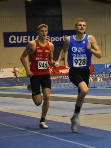 Fürth - 07.12.2024 - Beim traditionellen Sprint-Cup des LAC Quelle Fürth sorgte Johannes Weizinger vom Team Leidl der TSG 08 Roth im 1000 Meter-Lauf für ein schnelles Rennen. Mit persönlicher Bestzeit von 2:31,26 Minuten hatte er nach fünf Hallenrunden als Sieger des schnellsten Lauf des Tages knapp die Nase vorne vor dem 16-jährigen Noah Möller aus Staffelstein. Für Elias Knoll als U23-Sieger wurden 2:33,08 Minuten gestoppt.
