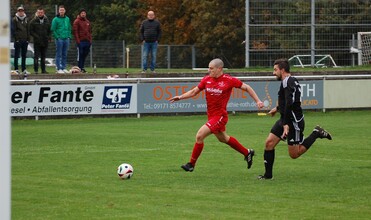 Dann aber legte die Elf von Trainer Max Weiß und seinem spielenden Co-Trainer Dominic Distler los: Denis Schweizer eröffnete den Torreigen (53., Bild), Max Hammer legte auf Vorarbeit von Lennart Boser nach (60.). Boser erhöhte anschließend auf 3:0 nach Vorarbeit von Distler (67.), Artem Suraichenko traf zum 4:0 (72.). Mit seinem ersten Saisontreffer erzielte Youngster Nils Fischer das 5:0 (80.), der Abschluss blieb Kapitän Hannes Ludwig mit einem verwandelten Foulelfmeter vorbehalten.