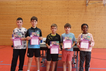 „An die Schläger fertig, los“ hieß es in der Turnhalle der Schule Gartenstraße am Wochenende. Bei den „mini-Meisterschaften“ im Tischtennis konnten alle Kinder bis 12 Jahre ihr Können unter Beweis stellen. Leider hatten sich nur fünf TT-Begeisterte auf den Weg gemacht. Sie waren somit bereits alle für den folgenden Kreisentscheid qualifiziert. Damit jeder möglichst viele Spiele bestreiten konnte, wurde das Turnier in einer Gruppe im Modus jeder gegen jeden ausgetragen. In der AK2 wurde bei den Jungen (3Teilnehmer) Ruben Romero Dierolf Erster. Bei den Mädchen qualifizierte sich Zoe Dengler. In der AK3 darf Mark Klauser zum Kreisentscheid fahren.