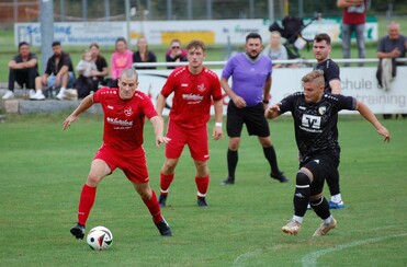 Die ungewohnte Anstoßzeit am Samstagmittag hatte zur Folge, dass beide Mannschaften auch mit den hochsommerlichen Temperaturen um die 33 Grad kämpfen mussten. Was unserer Ersten zunächst besser gelang, Fabian Müller und Tim Wolfschläger scheiterten aber noch an SV-Schlussmann Gabriel Rehm, Steffen Winterhager an der Latte. Dann fanden auch die Gastgeber ins Spiel, zwingendes war aber nicht dabei. Nach der kurzen Trinkpause setzte Max Hammer Denis Schweizer sehenswert in Szene, der mit dem 1:0 für unsere Erste abschloss (27.).