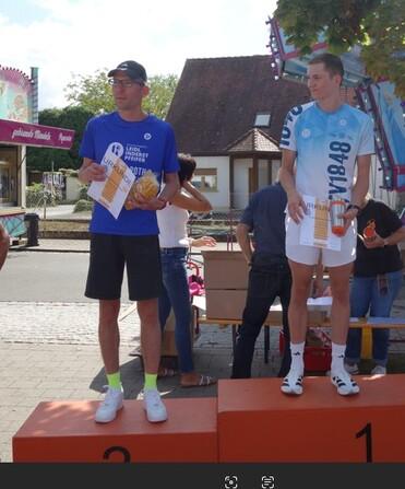 Gremsdorf - 06.09.2025 - Wiederum mit einem Doppelstart beteiligte sich Roland Rigotti beim Gremsdorfer Kerwalauf (Kreis Höchstadt/Aisch), wo er wie im Vorjahr mit zwei Podesträngen erfolgreich war. Zuerst war der Start beim Hobbylauf über 3800 Meter, wo er als Zweiter der Männer die Ziellinie nach 15:27 Minuten überschritt. Eine Stunde später war der Hauptlauf über 7600 Meter dran, den der Läufer vom Team Leidl der TSG 08 Roth als Zehnter der Gesamtwertung und als Zweiter der Wertung M45 in 32:35 Minuten abschloss. Mit vertreten beim Hauptlauf auf den vier eckigen Runden durch Gremsdorf war auch seine Vereinskameradin Edeltraud Dörr, die als 75-jährige zwar älteste Teilnehmerin war und ihre Altersklasse in 47:39 Minuten gewann, aber dennoch etliche Teilnehmenden hinter sich ließ.