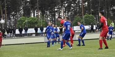 Vor rund 150 Zuschauern war die Weiß-Elf über weite Strecken das überlegene Team, konnte daraus aber wenig Kapital schlagen. Unsere Gäste traten offensiv selten in Erscheinung, wenn dann wurde es aber gefährlich, der ein oder andere Fernschuss rauschte nur knapp am Tor von Philipp Kellner vorbei. Pech hatte in der ersten Hälfte Hannes Ludwig mit einem Lattentreffer. Als es gefühlt schon in die Kabinen ging, wuchtete Fabian Müller, der die Kapitänsbinde trug, einen Kopfball aus zehn Metern ins SV-Tor (46., Bild).