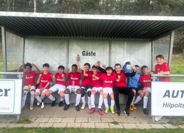 Lichtblicke waren dagegen der Derbysieg unserer Reserve in Bernlohe oder der erfolgreiche Start unserer D2 in die Frühjahrsrunde: Beim Kreisklassen-Herbstmeister TSV Eysölden setzte sich die, aufgrund der Osterferien, mit älterem Jahrgang verstärkte Truppe mit 2:0 durch (Bild). Zwei sehenswert herausgespielte Treffer durch Andrea und Jamin führten im Laufe der zweiten Hälfte zur Führung, auf der Gegenseite zeigte der eigentliche Feldspieler Wiktor wieder mal sein Talent als Torwart und sicherte den insgesamt verdienten Sieg.