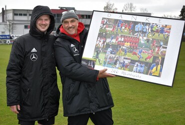 Die Abteilungsleitung um Nico Gelev bedankt sich bei Matze Berner (links im Bild) für die geleistete Arbeit. „Matze hat die Mannschaft in einer brutal schwierigen Situation übernommen und sportlich wieder auf Kurs gebracht, dafür sind wir ihm sehr dankbar. Schade, dass es jetzt so abrupt enden muss““, sagt Gelev.