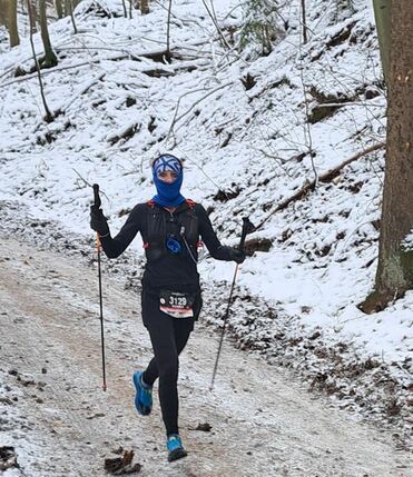 Pommelsbrunn -03.12.2023 - Nach ihren vielen erfolgreichen Starts über anspruchsvolle Trails kann sich Michaela Jilg eine erfahrene Trailläuferin nennen, und ihre Erfahrung nützte ihr auch beim MOUNTAINMAN Nikolaus-Trail in Pommelsbrunn. Über die winterlichen schneebedeckten Höhenwege in der Fränkischen Schweiz mit den markanten Punkten wie dem Zankelstein, der Burgruine Lichtenstein, dem Happurger Stausee und der „Houbirg“ erlangte die Athletin vom Team Leidl der TSG 08 Roth den fünften Rang unter 63 Teilnehmerinnen und gewann ihre Altersklasse W50.