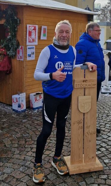 Weismain - 09.12.2023 - Von den winterlichen Verhältnissen lässt sich Michael Rubin nicht abhalten, und auch eine Woche nach seinem Start beim Stöckacher Adventslauf in Igensdorf stand der Läufer vom Team Leidl der TSG 08 Roth erneut am Start beim Kordigastlauf des SC Weismain, einem 4,8 Kilometer langen Berglauf zum Gipfel des Kordigast. Bei feuchtem Schnee und dickem, äußerst glattem Schneematsch war kein gleichmäßiges Laufen für ihn möglich, teilweise musste er gehen um nicht wegzurutschen, und wegen der anfänglichen, rundein Kilometer langen Asphaltstrecke konnten keine Spikes verwendet werden. Dennoch schaffte er in 33:34 Minuten den dritten Rang der Altersklasse M60 und kam als 41. des Gesamtklassements ins Ziel.