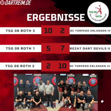 In einem spannenden Wettkampf fand sich die Mannschaft TSG 08 Roth zur Halbzeit mit einem Rückstand von 1:5 konfrontiert. Trotz bemühter Leistungen schien der Sieg der Rezat Dart Devils II vor den letzten Doppelspielen mit einem Stand von 3:7 bereits entschieden.