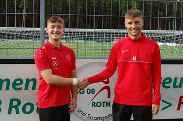 Der eine kommt, der andere geht: Auch der nächste FSJ’ler der TSG 08 Roth kommt aus der Fußballabteilung. Nach Christoph Zwingel und Veith Nothnagel (rechts, bis zum 31. August 2023) wird nun nach den Sommerferien Steffen Winterhager sein Freiwilliges Soziales Jahr bei der TSG absolvieren. Zwingel und Nothnagel sind seit diesem Sommer Spieler der Herrenmannschaft, Winterhager spielt seine zweite U19-Saison. Viel Spaß bei den vielfältigen Aufgaben als FSJ’ler.