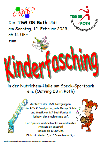 Wie laden am Sonntag den 12 Februar ab 14 Uhr zum Kinderfasching in die Nutrichem-Halle am Speck-Sportpark ein.