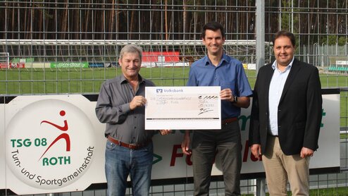 Ende Mai fand auf dem Sportgelände der TSG 08 Roth erstmalig das Sport Festival statt. Beim Charity-Lauf wurden von Jung und Alt fleißig Kilometer und damit auch Spenden gesammelt. Die Raiffeisenbank Roth gab 500 EUR dazu. Die TSG 08 Roth rundete großzügig auf und so konnten dem 1. Vorsitzenden der Tafel in Roth, Herrn Robert Gattenlöhner 1.111 EUR als Spende für die Tafel übergeben werden. Geld, dass die Tafel gut gebrauchen kann. Denn die Zahl der Bedürftigen steigt stetig an, während das Spendenaufkommen eher nachlässt, wie Gattenlöhner anmerkte. Er bedankte sich mit einem herzlichen „Vergelt’s Gott“ bei den kleinen und großen Spendern und natürlich der TSG 08 Roth, die den Spendenlauf ins Leben gerufen hatte.