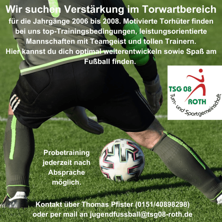 Kontakt über Thomas Pfister (0151/40898298) oder per mail an jugendfussball@tsg08-roth.de