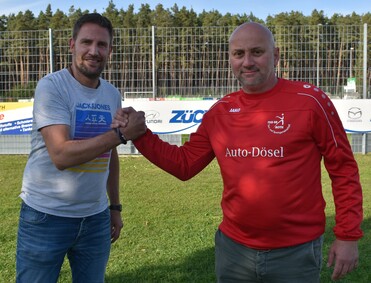 Den Nackenschlag gegen Herrieden gilt es schnellstmöglichst zu verdauen, bereits am Mittwoch steht für unsere erste Mannschaft in der Bezirksliga das schwere Nachholspiel beim SV Unterreichenbach an (18.30 Uhr). Beim starken Aufsteiger wird auch unser neuer Trainer erstmals an der Seitenlinie stehen. Die Fußballabteilung der TSG begrüßt Marian Hrasche im Speck Sportpark (auf unserem Bild rechts mit Abteilungsleiter Nico Gelev).