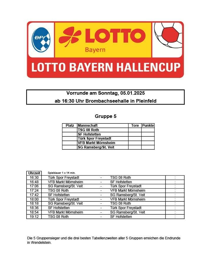 Die Sieger und die drei besten Zweiten der fünf Vorrundengruppen qualifizieren sich für die Endrunde am 11. Januar in Wendelstein.