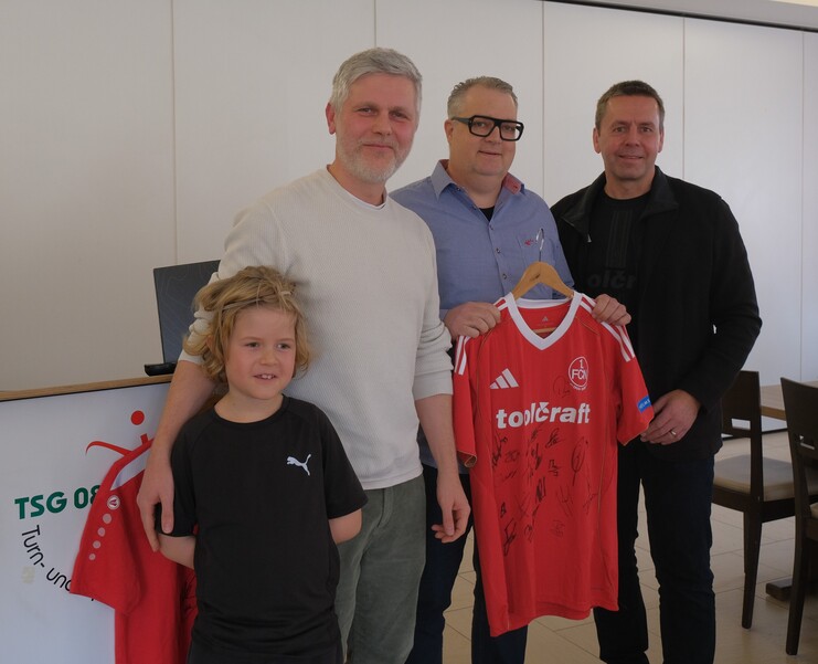 Für die Jugend wird auch das größte Projekt der vergangenen Jahre im Circutec Sportpark entstehen: das von der Fußballabteilung initiierte ClubHouse als zentraler Treffpunkt. Mitte des Jahres soll es eröffnen, wie Rainer Schuster aus dem Projektteam erklärte, über weitere Spenden dafür freuen sich alle Beteiligten. Im Sinne des ClubHouse fand auch noch eine Versteigerung mit „Auktionator“ Ben Schwarz statt. Neben WM- und EM-Fußbällen sowie den letzten handsignierten Biografien von FCN-Meisterspieler Heini Müller stießen zwei Trikots auf großes Interesse. Jenes mit der Unterschrift von Weltmeister und FCN-Trainer Miro Klose ging in den Besitz von Christian Jakob über, das FCN-Trikot mit den Unterschriften aller Spieler vom Vortag beim 5:1-Clubsieg über Karlsruhe an Christian Gatt (Bild). Alles in allem konnten an diesem Tag weitere 1600 Euro an Spendengeldern für unser ClubHouse gesammelt werden.