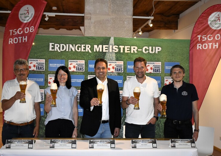 Anwesend waren neben den beiden BFV-Verbandsspielleitern Kerstin Costa (Frauen) und Josef Janker (Herren) auch Tobias Schneider von der ERDINGER Weißbräu, Nico Gelev als TSG-Fußball-Abteilungsleiter sowie Roths 1. Bürgermeister Andreas Buckreus, der als „Losfee“ fungierte. Und der auch einen persönlichen Bezug zum Meister-Cup hat: Als der damalige TSV Roth im Jahr 2006 als Meister der Bezirksliga Süd in die Bezirksoberliga aufgestiegen war, nahm er noch als aktiver Spieler teil, 2024 ist er als Bürgermeister der Stadt Roth Schirmherr der Veranstaltung.