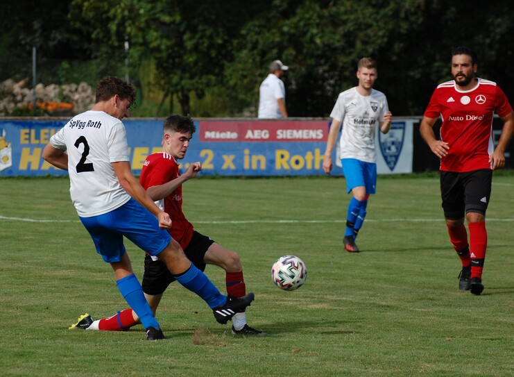 Das Rother Stadtderby geht an unsere Reserve! Am Sonntag gewann die Müller-Elf vor 150 Zuschauern bei der Spielvereinigung mit 3:1 (0:0). Zwar traf die „Spieli“ durch Lukas Kayser zum 1:0 (68.), doch unserer Zweite wendete das Blatt noch durch Tore von John Amadi (73., Elfmeter, 86.) und Timo Namakajjo (81.).