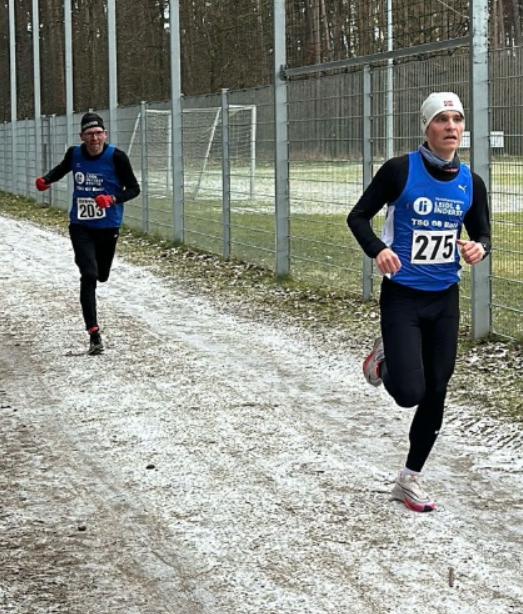 Dingolfing 25.01.2025 - Vielstarter Roland Rigotti vom Team Leidl der TSG 08 Roth konnte mit seinem Start im niederbayerischen Dingolfing die Liste seiner Wettkampforte erweitern. Dabei bot sich beim Stadioncross durch die für die Jahreszeit guten äußeren Bedingungen die Möglichkeit für einen Doppelstart. Auf einer 1500 Meter langen Runde abwechselnd auf Sandbahn und Graswegen quer durch das Dingolfinger Stadion. Im Wettbewerb über 4500 Meter lag er nach 17:08 Minuten auf dem zehnten Gesamtrang eines qualitativ schnellen Feldes und erzielte in der Altersklasse M45 den zweiten Platz. Schon gut zwanzig Minuten später ging es auf die 7500 Meter umfassende Langstrecke, die er im gleichen Tempo wie zuvor absolvierte und sich auf den dritten Gesamtrang in 28:27 Minuten vorarbeiten konnte und damit seine Altersklasse gewann.