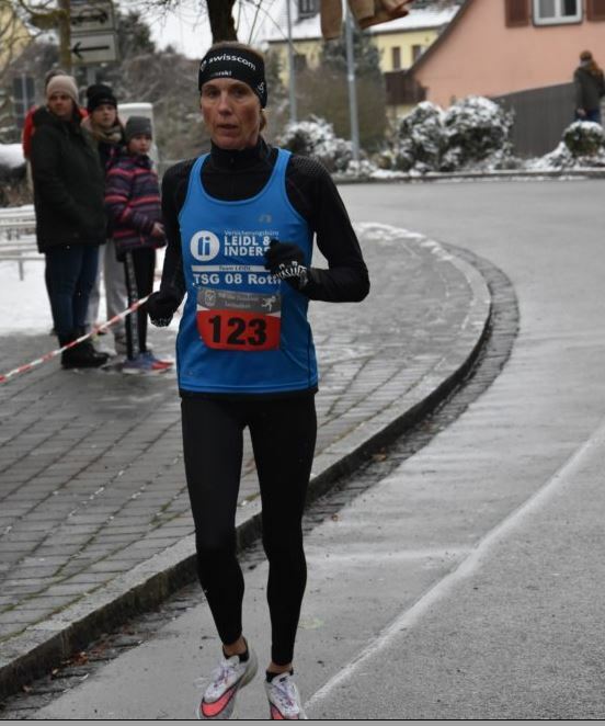 Dinkelsbühl - 18.01.2025 - Kaltes aber sonniges Winterwetter lockte zahlreiche Läufer/innen zum Start des 22. Dinkelsbühler Winter-Stadtlaufs. Auch Simone Promm vom Team Leidl der TSG 08 Roth nutzte die Gelegenheit eine bestenlistenfähige Zeit über die genau vermessene 10-Kilometerstrecke um die Dinkelsbühler Altstadt anzupeilen. Fast genau zwei Jahre nach ihrem W45-Sieg an gleicher Stelle zeigte sich die seit Jahresanfang in der W50 startende Athletin in sehr guter Verfassung und gewann erneut mit deutlichen Vorsprung vor der Konkurrenz. Mit ihrer Siegerzeit von 46:03 Minuten für den aufgrund einer spürbaren Steigung nicht leicht zu laufenden Kurs war sie nur zwei Sekunden langsamer als 2023 und zählte als Gesamt-Sechste aller Frauen zu den Tagesbesten.