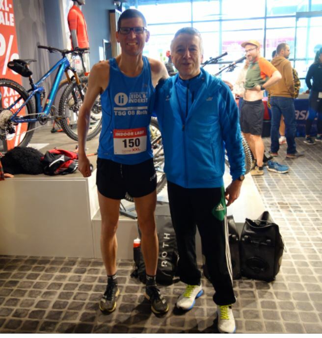 Fürth - 23.02.2025 - Fünf Aktive vom Team Leidl beteiligen sich beim ungewöhnlichen „Fahrrad XXL Fürth Indoor Lauf“, einer Veranstaltung im großen Hallenbereich der Firma Fahrrad XXL in Fürth. Für die verschiedenen Wettbewerbe gab es jeweils eine 440 Meter lange Runde mit einer 16-prozentigen Steigung hinauf ins Obergeschoss. Beim Rennen über zwölf Runden, also 5280 Meter, erzielte Roland Rigotti in 21:31 Minuten den achten Gesamtrang und damit den zweiten Platz der Altersklasse M45. Sein Vereinskamerad Michael Rubin errang in 29:16 Minuten den dritten Rang in der Klasse M60, und auch Marian Loy schaffte das außergewöhnliche Rennen in 31:36 Minuten. Seine Kinder mischten beim Kinderlauf 2 über 1,3 Kilometer mit, so wurde Simon Loy in 6:02 Minuten Sechster und Fiona Loy Zehnte in 7:29 Minuten.