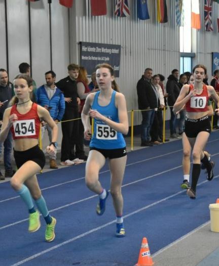 Sehr eng ging es auf der kurzen 200-Meterbahn in der Jugendklasse W15 über 2000 Meter zu. Alica Krogmeier traf hier auf 18 Gegnerinnen und hatte auf den 10 Runden etliche Positionskämpfe zu bestehen. Mit 7:23,31 Minuten finishte die hochmotivierte Jugendliche mit nur knappem Rückstand auf die Topläuferinnen und verfehlte mit Rang neun ihre Freiluftbestzeit um Sekundenbruchteile.