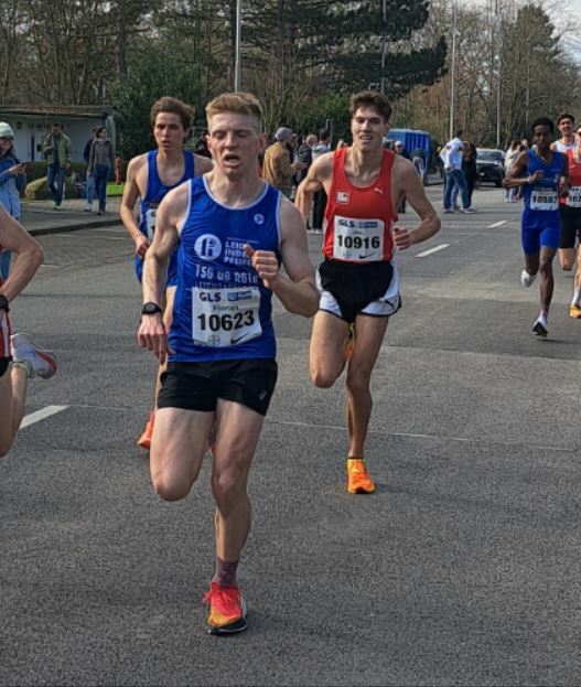 Leverkusen - 03.03.2024 - Deutschlands Straßenläufer kürten dieser Tage beim Lauf um das Leverkusener Bayerkreuz ihre nationalen Meister im 10 Kilometer-Straßenlauf. Viele der knapp 1000 Läufer/innen, darunter mit Johannes Weizinger und Florian Macher auch die beiden Bayerischen Hallenmeister über 1500 bzw. 3000 Meter vom Teams Leidl der TSG 08 Roth nutzten die idealen Bedingungen und markierten neue persönliche Bestzeiten. Auch für Florian Macher hat sich der große Aufwand gelohnt, als er nach 16:07 Minuten bei 5000 Meter im Ziel mit starken 32:45 Minuten erstmals unter der 33-Minutenschwelle blieb. Seinen alten Hausrekord hat er damit um 30 Sekunden pulverisiert. Weniger gut lief es für seinen Teamkameraden Johannes Weizinger. Nach sehr guter 5000 Meter-Zwischenzeit musste er aufgrund plötzlich auftretender Magenprobleme das Rennen leider abbrechen.