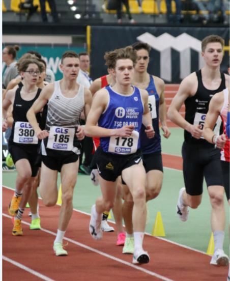 Leipzig - 17.02.2024 - Am vergangenen Wochenende wurden die Deutschen Hallen-Meisterschaften der Aktiven in Leipzig ausgetragen. Neben den bekannten Spitzenathleten wie Malaiko Mihambo oder Gesa Krause stand mit Johannes Weizinger vom Team Leidl der TSG 08 Roth auch ein Läufer des Leichtathletikkreises Roth unter den rund 500 nationalen Spitzenathleten am Start.. Wie in den Wochen zuvor berichtet, hatte sich Weizinger für den 3000 Meter-Lauf qualifiziert. In einem bewusst konservativ angelegten Rennen ordnete sich Weizinger im hochkarätigen Feld in einer hinteren Läufergruppe ein, um sich für die bevorstehenden 15 Runden im Hallenoval zu schonen. Aufgrund der klugen Renneinteilung konnte er sein Tempo konstant hoch halten und mit neuer persönlicher Bestzeit von 8:21,9 Minuten sein Meisterschaftsdebut auf nationaler Ebene mit Platz 10 erfolgreich gestalten. Platzierung und Leistung sind für den aufstrebenden jungen Langstreckenläufer ein vorläufiger Höhepunkt in seiner noch jungen Laufkarriere.mit optimalen Perspektiven für die bevorstehende Freiluft-Saison.. Schon in drei Wochen möchte er bei seinem nächsten DM-Meisterschaftsrennen über 10 Kilometer in Leverkusen sein aktuell hohes Leistungsniveau bestätigen.