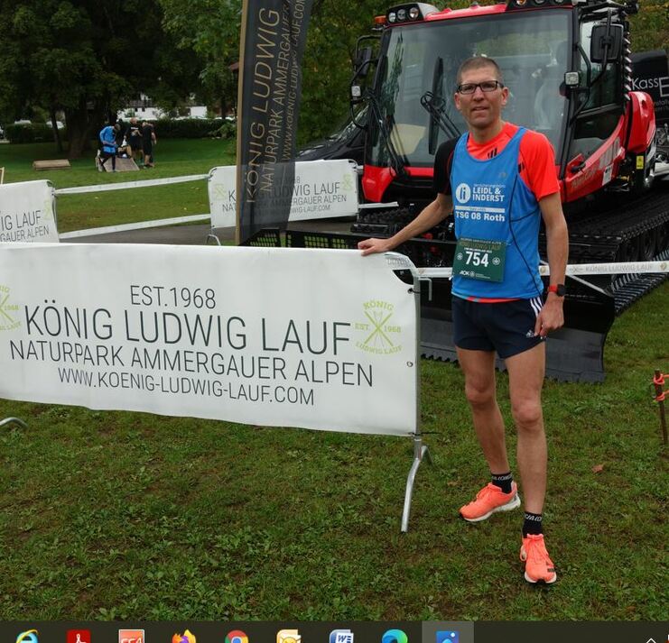 Ettal - 29.09.2023 - Roland Rigotti findet ständig die Möglichkeit zu einem Start, so beim König-Ludwig-Lauf von Ettal nach Oberammergau. Der Start war im Klosterhof in Ettal und führte als kurzer Trail auf Panoramawegen nach Oberammergau. Unter den 61 Männern kam er als Gesamtvierter ins Ziel, nur vier Sekunden vom Podiumsplatz entfernt, dafür reichte es für den Läufer vom Team Leidl der TSG 08 Roth mit 23:28 Minuten zum überlegenen Sieg der Klasse M40/45.