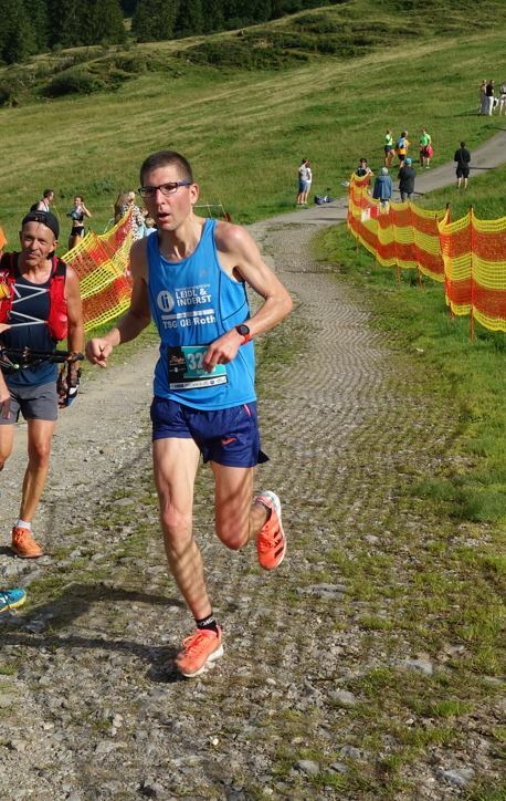 Der Start begann in Sonthofen, nach flachen zwei Kilometern ging es über die Hörnergruppe bis zum höchsten Punkt, dem Weiherkopf auf 1665 Meter, etliche Stellen waren dabei so steil, dass sie Roland Rigotti nur gehend sicher schaffte, dafür konnte er die 400 Höhenmeter abwärts zum Ziel in Grasgehren flotter als 74. von 233 Männern hinter sich bringen.