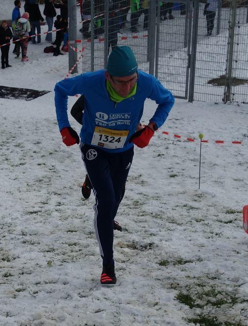 Weinstadt - 17.12.2022 - Die vorletzte Startgelegenheit dieses Jahres führte Roland Rigotti nach Weinstadt bei Stuttgart, wo für die Jugendlichen und Junioren das Finale des Deutschen Crosscups 2022 stattfand. In diesem Rahmen startete der Läufer vom Team Leidl der TSG 08 Roth zunächst auf der Kurzstrecke für die Erwachsenen über 2200 Meter. Mehrere kleine, giftige Anstiege und ein technisch anspruchsvoller Hügel auf schneebedeckter Strecke sorgten bei minus fünf Grad für einen klassischen Crosslauf, den Roland Rigotti nach 9:56,4 Minuten als Gesamtdritter und Erster der Altersklasse M45 beendete. Wenig später startete er zusätzlich auf der Mittelstrecke über 4400 Meter, wo es zum zwölften Gesamtrang und dem zweiten Platz der M45 in 19:50,9 Minuten reichte.