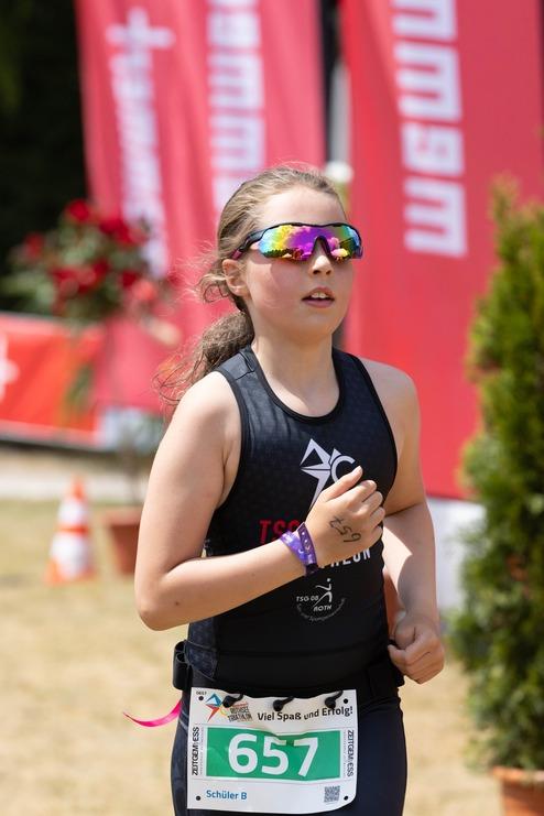Eine Staffel, bestehend aus einem Jungen und einem Mädchen. Zeitgleich starteten 35 Mädchen, absolvierten einen Miniduathlon und übergaben an ihren Staffelpartner. Der absolvierte ebenfalls einen Miniduathlon und dann das Ganze noch einmal von vorne.