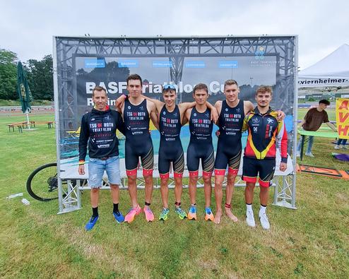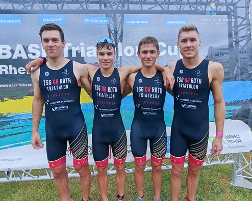 Die Rother gingen mit Alexander Richter, Kilian Bauer, Moritz Hägel, Moritz Hartmann und Elias Knoll an den Start. Erfolgs-Teammanager Jonathan Zipf hatte vor dem Wettkampf betont, wie wichtig ein guter Start im Wasser sei. Mit etwa einer Minute Rückstand auf die Spitze stieg Moritz Hägel (9:28 Minuten) als erster Rother nach 750 Metern aus dem Wasser. Es folgten Bauer (9:33), Knoll (9:35), Hartmann (9:40) und Richter (9:53). Auf den 20 Radkilometern und fünf Laufkilometern galt es für das Team, Boden gutzumachen.