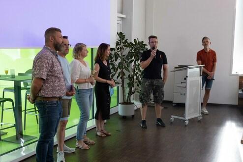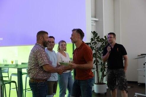 Sebastian Freiman (links), Thomas Herrmann (rechts) und Anke Freiman (2. v. r.)