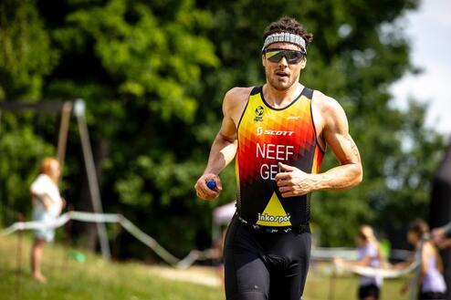 „Mit so kurzer Erholungszeit war das eine echte Härteprüfung“, erklärte Neef. Schon beim Schwimmen musste er durch eingeschränkte Trainingsbedingungen im Allgäu Rückschläge hinnehmen und verlor eine Minute auf die Spitze. Auf dem Rad hatte er zunächst mit schweren Beinen zu kämpfen, fand nach 20 Minuten jedoch seinen Rhythmus und fuhr noch die viertbeste Radzeit heraus.