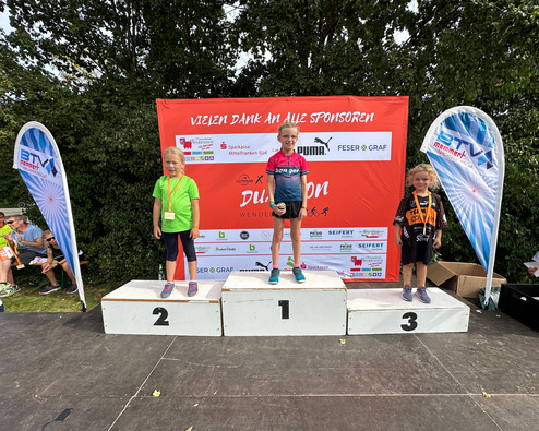 Eine Staffel, bestehend aus einem Jungen und einem Mädchen. Zeitgleich starteten 35 Mädchen, absolvierten einen Miniduathlon und übergaben an ihren Staffelpartner. Der absolvierte ebenfalls einen Miniduathlon und dann das Ganze noch einmal von vorne.