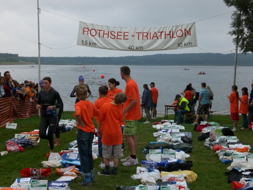 Die Rother gingen mit Alexander Richter, Kilian Bauer, Moritz Hägel, Moritz Hartmann und Elias Knoll an den Start. Erfolgs-Teammanager Jonathan Zipf hatte vor dem Wettkampf betont, wie wichtig ein guter Start im Wasser sei. Mit etwa einer Minute Rückstand auf die Spitze stieg Moritz Hägel (9:28 Minuten) als erster Rother nach 750 Metern aus dem Wasser. Es folgten Bauer (9:33), Knoll (9:35), Hartmann (9:40) und Richter (9:53). Auf den 20 Radkilometern und fünf Laufkilometern galt es für das Team, Boden gutzumachen.