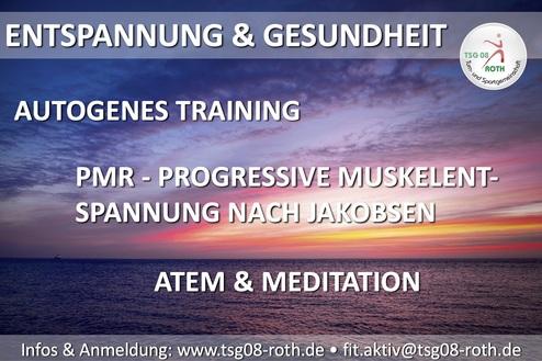 Ab September startet wieder das Sportprogramm der TSG 08 Roth. Neben den vielfältigen Fitnessstunden für Erwachsene gibt es auch ein großes Angebot an Gesundheits- und Entspannungskursen. Neu im Programm sind Autogenes Training (Donnerstags, 17:15 Uhr) Progressive Muskelentspannung (PMR)(Dienstag, 17:15 Uhr) und Tai Chi für Anfänger (Mittwoch, 17:45 Uhr). Am Sonntag, 26.09. findet zum Kennenlernen ein Workshop Tai Chi für Anfänger statt.