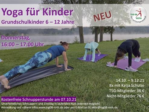 In Kürze startet ein neues Angebot bei der TSG 08 Roth: Yoga für Grundschulkinder von 6 bis 12 Jahren. Am 7. Oktober laden wir alle Interessierte um 16 Uhr zu einer kostenfreien Schnupperstunde ein. Der achteilige Kurs startet am 14.10. und findet jeden Donnerstag von 16 bis 17 Uhr bei der TSG statt.