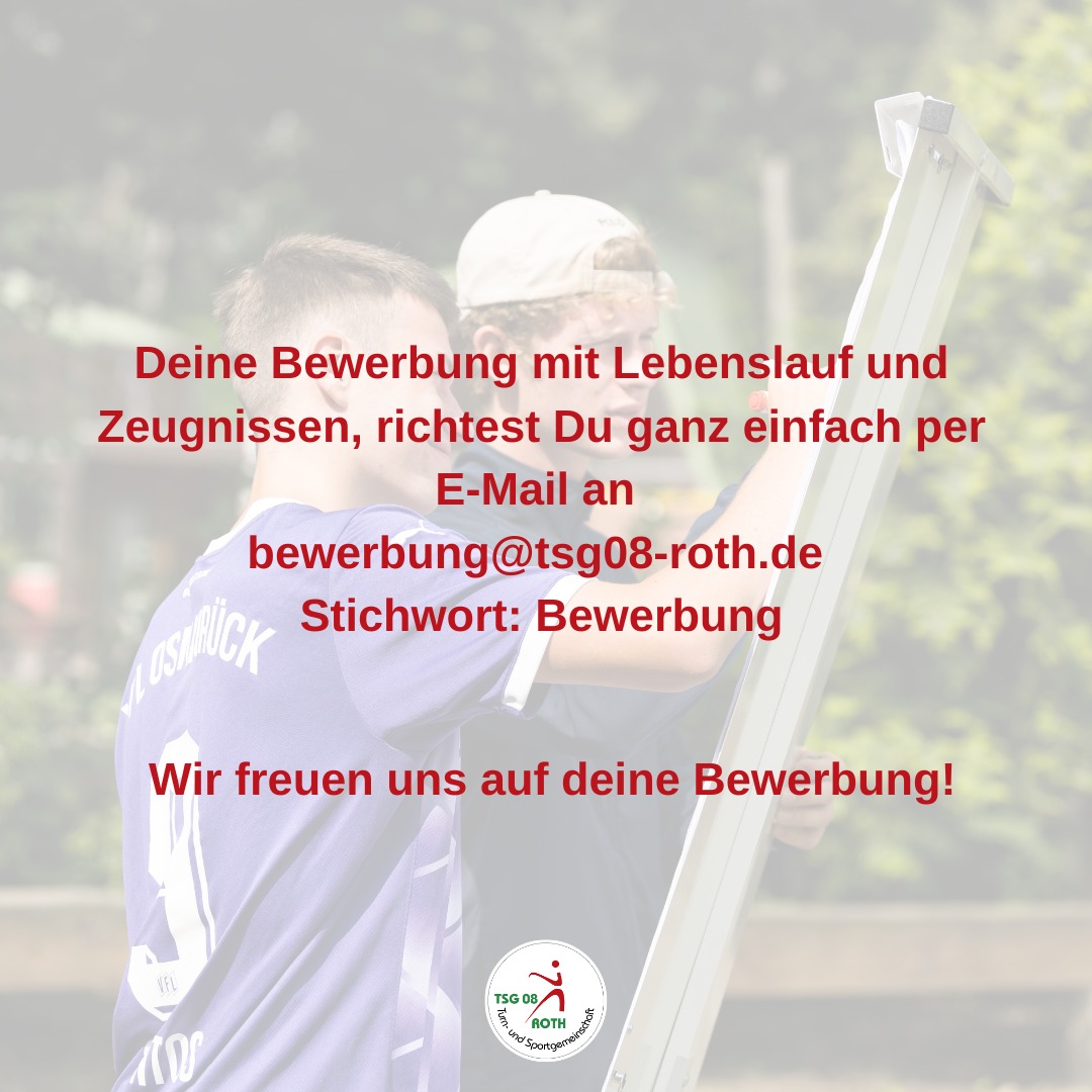 Bewerbe dich jetzt per E-Mail an bewerbung@tsg08-roth.de